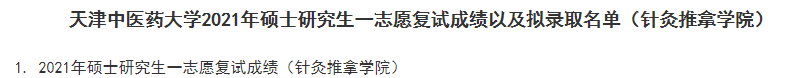 為幫助各位考生及時(shí)了解錄取結(jié)果,醫(yī)學(xué)教育網(wǎng)小編從天津中醫(yī)藥大學(xué)研究生院的官網(wǎng)上查找到了“ 天津中醫(yī)藥大學(xué)2021年碩士研究生一志愿復(fù)試成績以及擬錄取名單(針灸推拿學(xué)院)”通知內(nèi)容如下,請(qǐng)同學(xué)仔細(xì)查看!有問題請(qǐng)及時(shí)聯(lián)系學(xué)校!