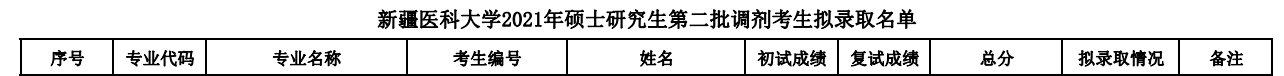 為幫助各位考生及時了解錄取結(jié)果,醫(yī)學(xué)教育網(wǎng)小編在新疆醫(yī)科大學(xué)研究生院的官網(wǎng)上查找到了“新疆醫(yī)科大學(xué)2021年碩士研究生第二批調(diào)劑考生擬錄取名單”通知內(nèi)容如下,請同學(xué)仔細(xì)查看!有問題請及時聯(lián)系學(xué)校!