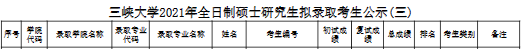 現(xiàn)將三峽大學(xué)2021年碩士研究生擬錄取考生名單(三)予以公示,公示時間為10個工作日。若有疑議,請撥打電話0717-6393256。