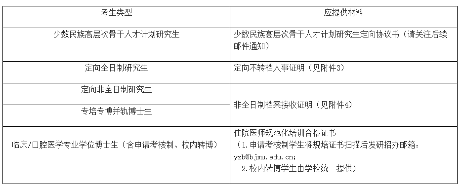 以下類別考生還應提供相應協(xié)議或證明等材料,與“政審表”一同寄送醫(yī)學部研招辦,審核通過后寄發(fā)錄取通知書。