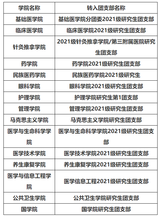 【智慧團建說明】:智慧團建系統(tǒng)https://zhtj.youth.cn/zhtj/。賬號身份證,原始密碼身份證后八位(若無法登錄請聯(lián)系原團籍所在單位)→關(guān)系轉(zhuǎn)接→申請轉(zhuǎn)入成都中醫(yī)藥大學(xué)xx學(xué)院(所在學(xué)院)xx團支部,轉(zhuǎn)接中如有問題,如系統(tǒng)無本人信息等請聯(lián)系原團籍所在單位,完成信息錄入與轉(zhuǎn)接。