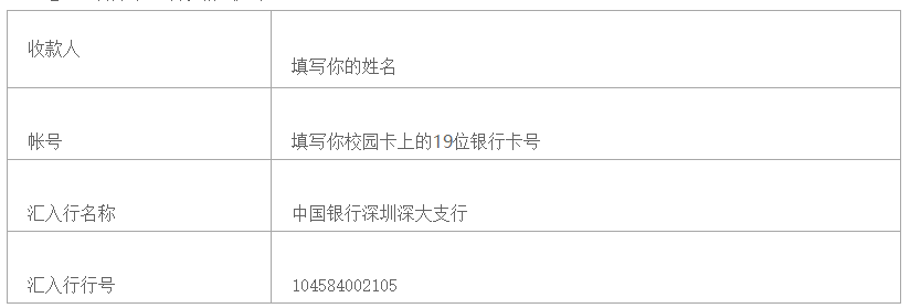 電匯、轉(zhuǎn)賬學(xué)生填表格式如下:
