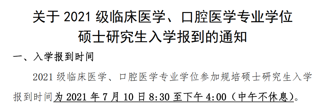 點擊查看: 關于2021級臨床醫(yī)學、口腔醫(yī)學專業(yè)學位碩士研究生入學報到的通知
