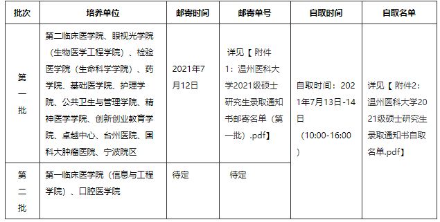 我校碩士研究生錄取通知書(shū)將采取分批寄送,具體安排如下:
