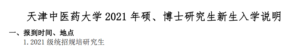 2021年天津中醫(yī)藥大學(xué)新生入學(xué)說明