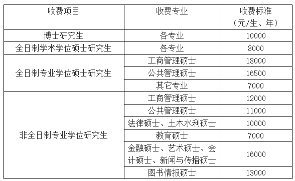 河北大學(xué)研究生學(xué)費標準表