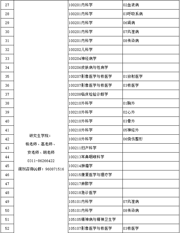根據(jù)《2020年全國碩士研究生招生考試考生進(jìn)入復(fù)試的初試成績基本要求》及我校第一志愿考生初試基本情況的綜合分析,我校2020年部分專業(yè)將接受考生調(diào)劑(詳見附表)。根據(jù)《教育部關(guān)于印發(fā)<2020年全國碩士研究生招生工作管理規(guī)定>的通知》(教學(xué)函〔2019〕6號)和《教育部辦公廳關(guān)于做好碩士研究生招生調(diào)劑工作的通知》(教學(xué)廳函〔2018〕14號)等文件要求,我校接收所有調(diào)劑考生,不分校內(nèi)、校外調(diào)劑,所有調(diào)劑考生均須通過教育部指定的“全國碩士生招生調(diào)劑服務(wù)系統(tǒng)”進(jìn)行調(diào)劑,系統(tǒng)預(yù)計5月20日開通。調(diào)劑程序、各專業(yè)(領(lǐng)域)調(diào)劑缺額數(shù)量和要求、復(fù)試辦法等將在“五一”節(jié)后陸續(xù)公布,請考生及時關(guān)注河北醫(yī)科大學(xué)研究生學(xué)院官網(wǎng)招生信息。