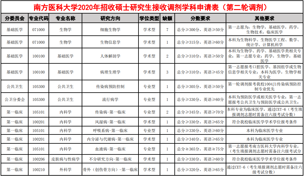 醫(yī)學(xué)教育網(wǎng)小編在南方醫(yī)科大學(xué)的研究生院官網(wǎng)上查閱到了“南方醫(yī)科大學(xué)2020年碩士研究生接收調(diào)劑復(fù)試公告第二輪缺額信息”,為幫助各位想要報考南方醫(yī)科大學(xué)的考生了解,醫(yī)學(xué)教育網(wǎng)小編整理通知內(nèi)容如下: