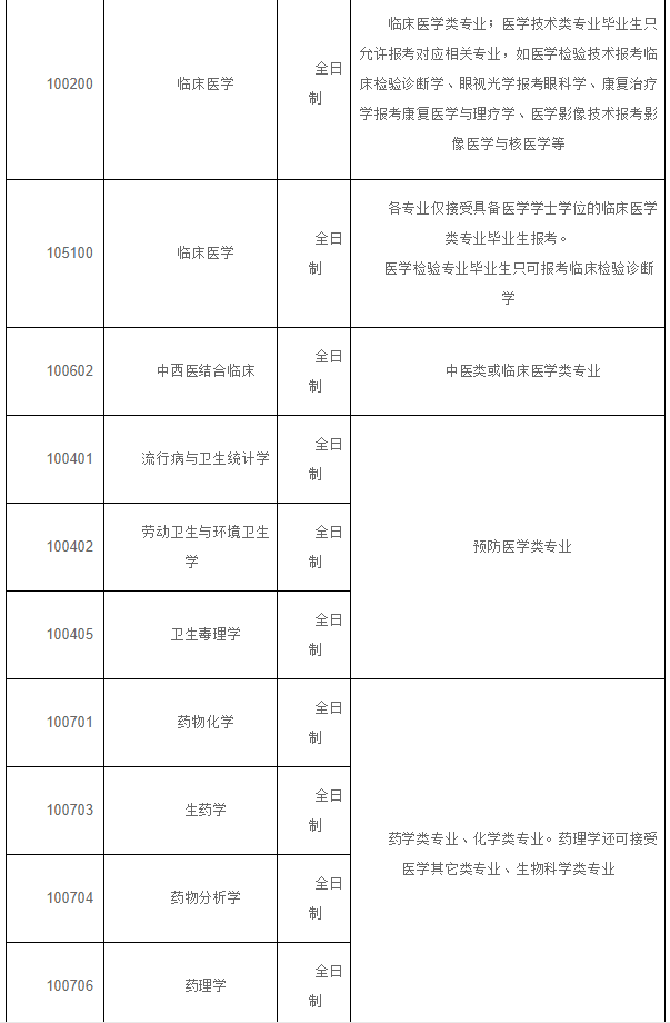 (七)第一志愿報(bào)考臨床醫(yī)學(xué)專(zhuān)業(yè)學(xué)位的考生可按相關(guān)政策調(diào)劑到醫(yī)學(xué)其他專(zhuān)業(yè),但第一志愿報(bào)考其他專(zhuān)業(yè)的考生不可調(diào)劑到臨床醫(yī)學(xué)專(zhuān)業(yè)學(xué)位。比如,調(diào)劑我校專(zhuān)業(yè)代碼為1051-的專(zhuān)業(yè)的考生,其第一志愿專(zhuān)業(yè)代碼必須為1051-。