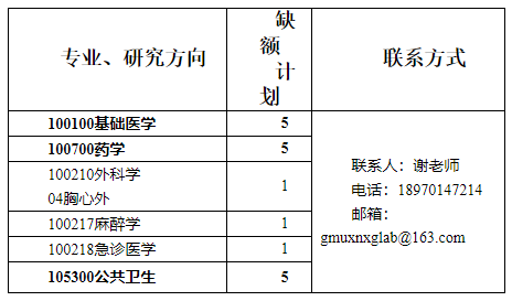根據(jù)我校心腦血管疾病防治教育部重點(diǎn)實(shí)驗(yàn)室(以下簡稱“實(shí)驗(yàn)室”)一志愿考生上線情況,現(xiàn)將實(shí)驗(yàn)室調(diào)劑專業(yè)及相關(guān)事項(xiàng)公告如下: