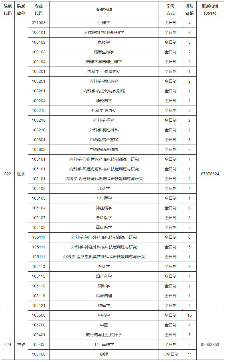 揚州大學2022年碩士研究生擬接收調劑專業(yè)