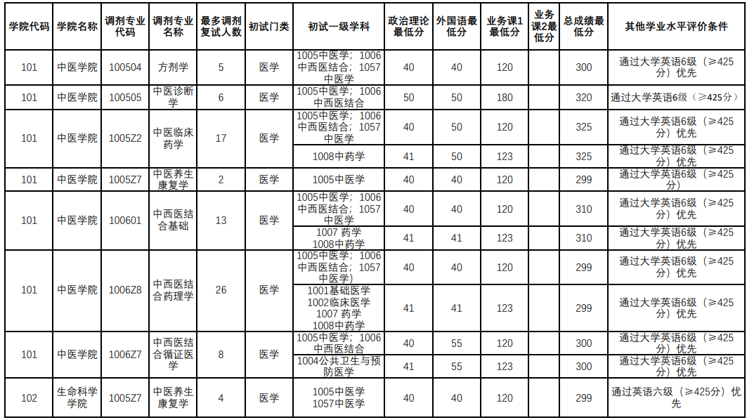 分?jǐn)?shù)線也公布了!調(diào)劑系統(tǒng)也已經(jīng)開(kāi)放了!調(diào)劑公告你好好看了嗎?不少院校發(fā)布了調(diào)劑信息!醫(yī)學(xué)教育網(wǎng)小編在北京中醫(yī)藥大學(xué)的官網(wǎng)上查閱到了“學(xué)術(shù)學(xué)位調(diào)劑復(fù)試條件匯總表”,為幫助各位想要調(diào)劑到北京中醫(yī)藥大學(xué)的考生了解,醫(yī)學(xué)教育網(wǎng)小編整理通知內(nèi)容如下: