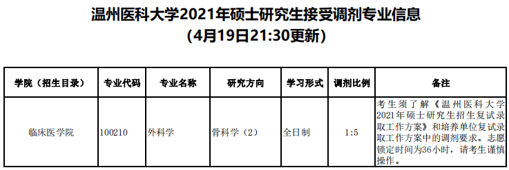 分數(shù)線也公布了!調(diào)劑系統(tǒng)也已經(jīng)開放了!調(diào)劑公告你好好看了嗎?不少院校發(fā)布了調(diào)劑信息!醫(yī)學(xué)教育網(wǎng)小編在溫州醫(yī)科大學(xué)的官網(wǎng)上查閱到了“溫州醫(yī)科大學(xué)2021年碩士研究生接受調(diào)劑專業(yè)信息”,為幫助各位想要調(diào)劑到溫州醫(yī)科大學(xué)的考生了解,醫(yī)學(xué)教育網(wǎng)小編整理通知內(nèi)容如下:
