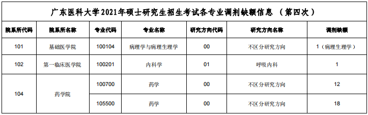 分?jǐn)?shù)線也公布了!調(diào)劑系統(tǒng)也已經(jīng)開放了!調(diào)劑公告你好好看了嗎?不少院校發(fā)布了調(diào)劑信息!醫(yī)學(xué)教育網(wǎng)小編在廣東醫(yī)科大學(xué)的官網(wǎng)上查閱到了“廣東醫(yī)科大學(xué)2021年碩士研究生各專業(yè)第四次調(diào)劑缺額信息”,為幫助各位想要調(diào)劑到廣東醫(yī)科大學(xué)的考生了解,醫(yī)學(xué)教育網(wǎng)小編整理通知內(nèi)容如下: