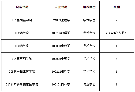 分?jǐn)?shù)線也公布了!調(diào)劑系統(tǒng)也已經(jīng)開放了!調(diào)劑公告你好好看了嗎?不少院校發(fā)布了調(diào)劑信息!醫(yī)學(xué)教育網(wǎng)小編在內(nèi)蒙古醫(yī)科大學(xué)的官網(wǎng)上查閱到了“內(nèi)蒙古醫(yī)科大學(xué)2021年碩士研究生招生第三次調(diào)劑缺額信息”,為幫助各位想要調(diào)劑到內(nèi)蒙古醫(yī)科大學(xué)的考生了解,醫(yī)學(xué)教育網(wǎng)小編整理通知內(nèi)容如下: