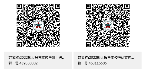 熱忱歡迎各位同學(xué)報(bào)考本校研究生,有意向的同學(xué)請用QQ掃下面的二維碼加入我校研招宣傳聯(lián)絡(luò)員創(chuàng)建的“報(bào)考鄭大考研QQ交流群”,報(bào)考鄭大相關(guān)問題可在群里向?qū)W長們咨詢,同時(shí)考試相關(guān)提醒信息我們也會(huì)通過QQ群通知。