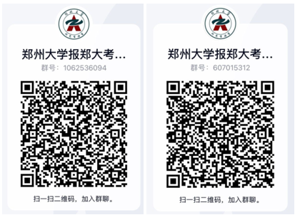 熱忱歡迎各位同學(xué)報考本校研究生,有意向的同學(xué)請用QQ掃下面的二維碼加入我校研招宣傳聯(lián)絡(luò)員創(chuàng)建的“報考鄭大考研QQ交流群”,報考鄭大相關(guān)問題可在群里向?qū)W長們咨詢,同時考試相關(guān)提醒信息我們也會通過QQ群通知。