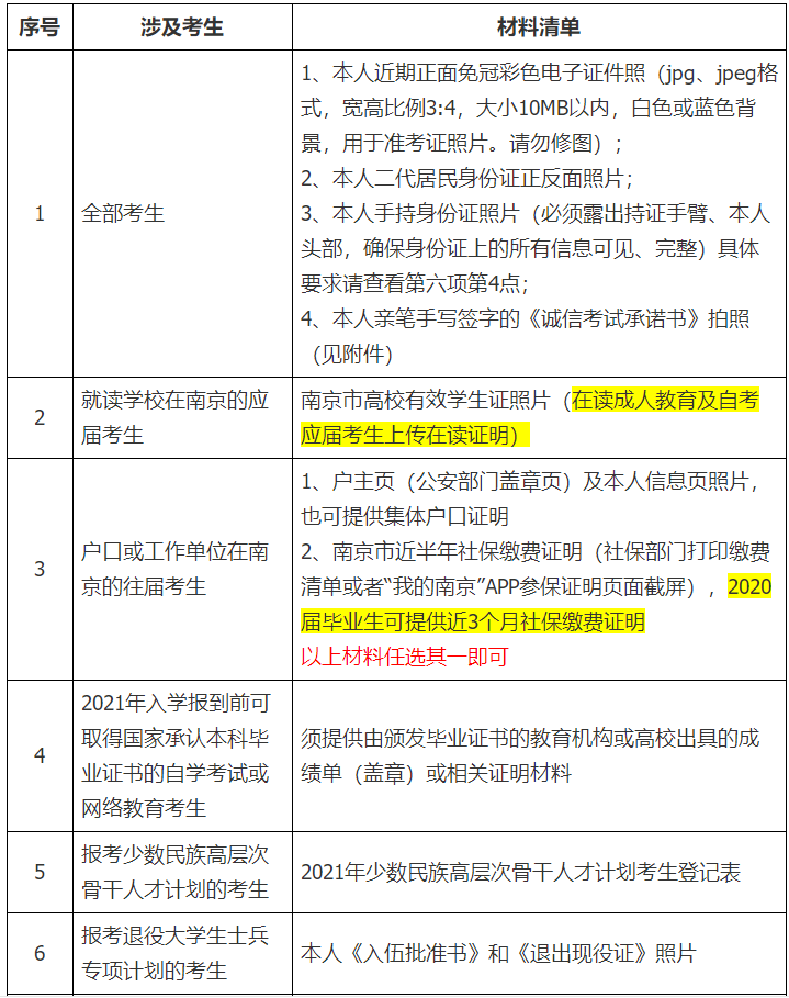 2、戶口或工作單位在南京的往屆考生
