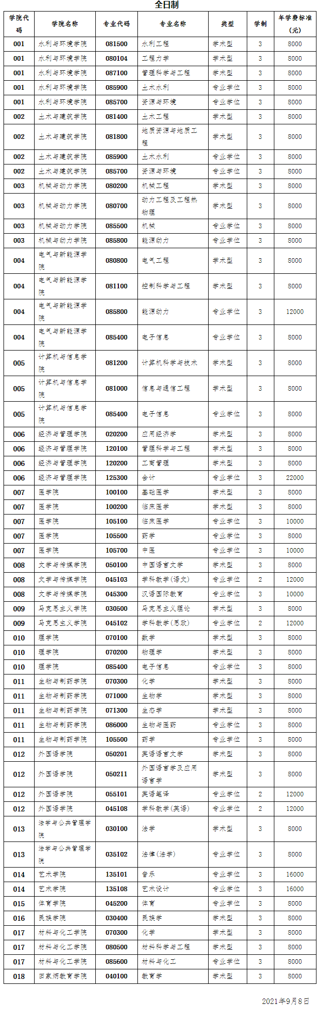 各專業(yè)收費(fèi)標(biāo)準(zhǔn)見(jiàn)本簡(jiǎn)章“接收推免專業(yè)一覽”,最終學(xué)費(fèi)標(biāo)準(zhǔn)以相關(guān)部門(mén)公布為準(zhǔn)。