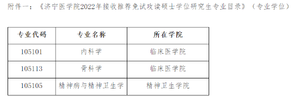我校只接收全日制5年一貫及以上學(xué)制西醫(yī)臨床醫(yī)學(xué)本科推免生,接收推免生的專業(yè)(領(lǐng)域)、人數(shù)及學(xué)制請參閱《濟(jì)寧醫(yī)學(xué)院2022年接收推薦免試攻讀碩士學(xué)位研究生專業(yè)目錄》。