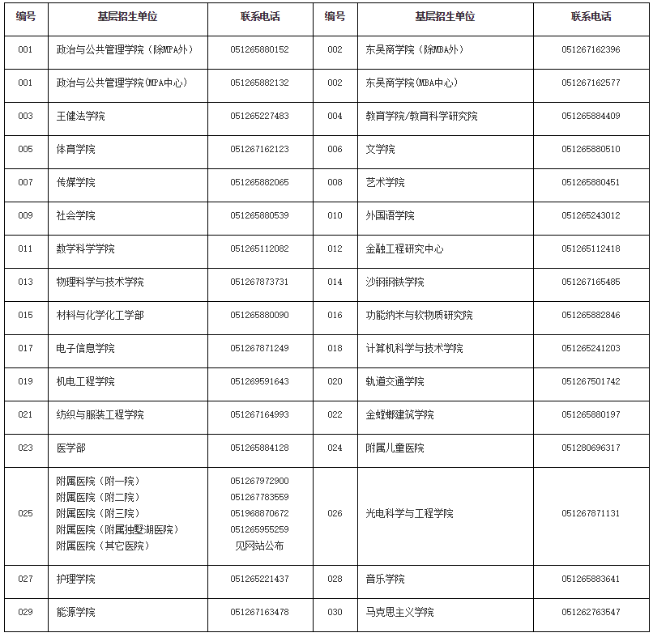 研究生院招生辦聯(lián)系電話:0512-65227655、65227656,傳真:0512-65112816