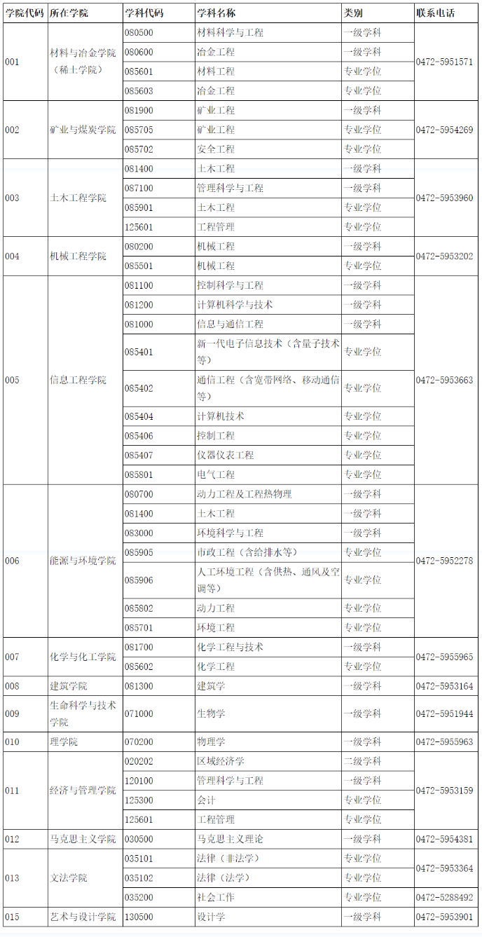 內(nèi)蒙古科技大學(xué)碩士學(xué)位授權(quán)學(xué)科、專業(yè)一覽及學(xué)院聯(lián)系方式