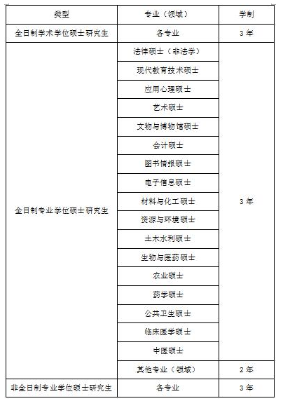 最長(zhǎng)學(xué)習(xí)年限:3年制碩士研究生不超過5年,2年制碩士研究生不超過4年。