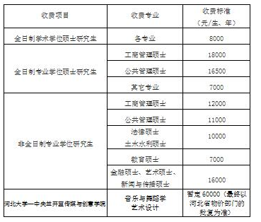 河北大學(xué)研究生學(xué)費(fèi)標(biāo)準(zhǔn)表