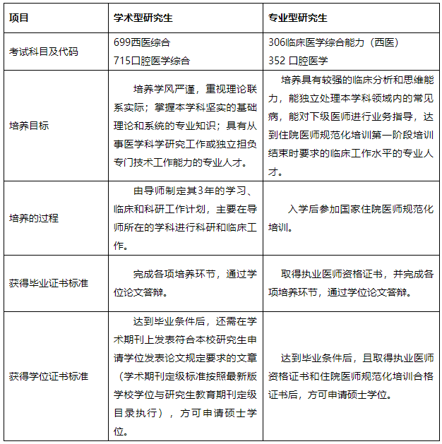 問題:溫州醫(yī)科大學(xué)2022年碩士招生臨床醫(yī)學(xué)(口腔醫(yī)學(xué))專業(yè)的學(xué)術(shù)型和專業(yè)型碩士研究生有何區(qū)別?