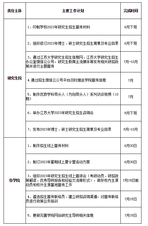 為進(jìn)一步拓寬生源渠道,改善生源結(jié)構(gòu),提高生源質(zhì)量,吸引更多優(yōu)秀生源報(bào)考我校研究生,根據(jù)《江蘇大學(xué)研究生招生宣傳實(shí)施辦法》(江大研字(2014)15號(hào)),結(jié)合當(dāng)前疫情防控實(shí)際,現(xiàn)將2023年研究生招生宣傳工作有關(guān)事項(xiàng)通知如下: