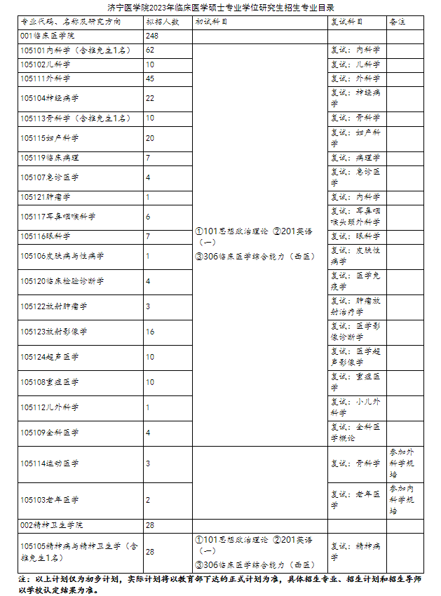 2.考試科目詳見“濟(jì)寧醫(yī)學(xué)院2023年碩士研究生招生專業(yè)目錄”。我校不指定任何參考書目,也不舉辦任何形式的考研輔導(dǎo)班。