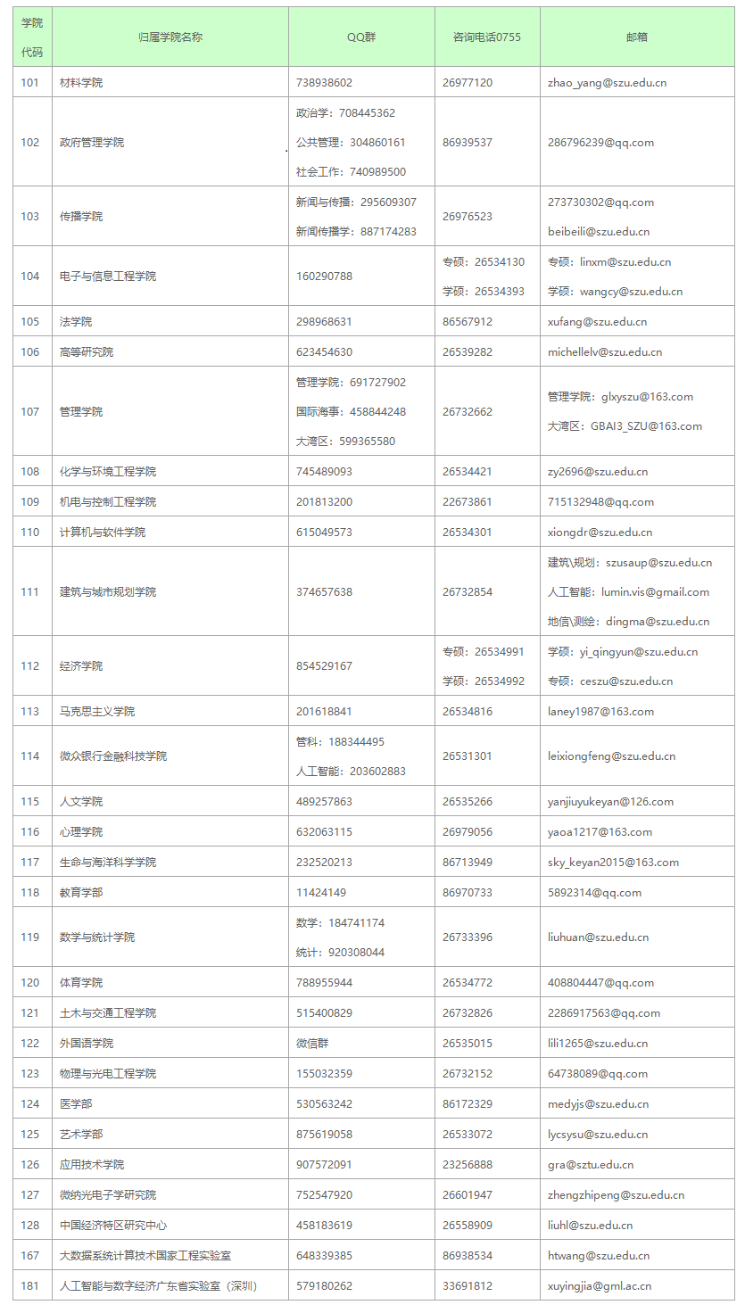 3、為便于各位獲得推免資格并且有意推免到深圳大學(xué)的優(yōu)秀學(xué)子找到組織,了解學(xué)院更多第一手招生資訊,現(xiàn)特此公布深圳大學(xué)各招生學(xué)院2023年推免生招生聯(lián)系方式及QQ群。