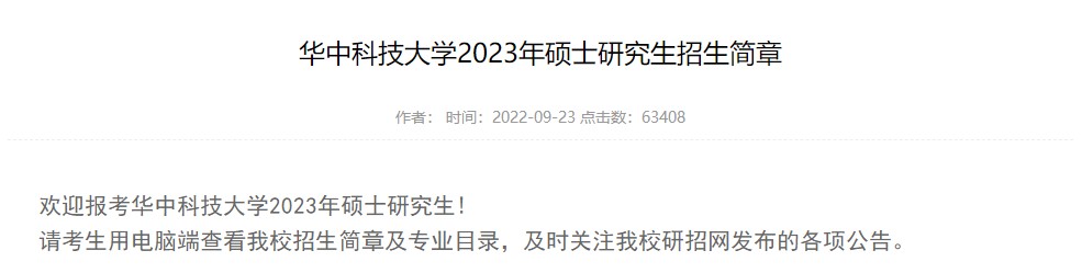 華中科技大學(xué)2023年碩士研究生招生簡章發(fā)布啦!具體內(nèi)容如下: