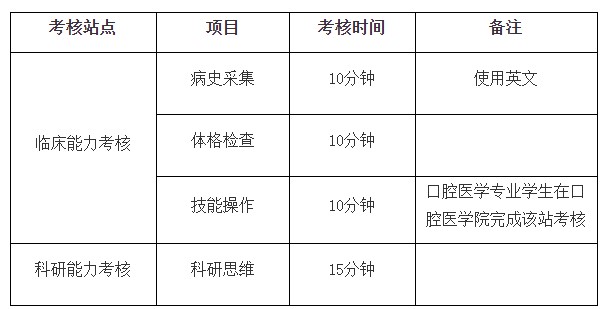 綜合考核成績滿分為100分,其中臨床能力考核滿分70分,科研能力考核滿分30分。綜合考核成績低于60分視為考核不合格??己藭r間每位考生45分鐘(其中臨床能力考核30分鐘,科研能力考核15分鐘)。臨床能力考核專家須是副主任及以上職稱,臨床能力考核各站由兩位考核專家同時評分,取平均分。