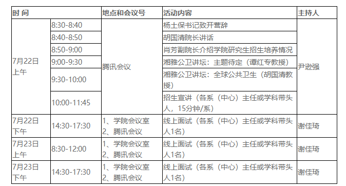 2020年優(yōu)秀大學(xué)生提前面試暨夏令營活動(dòng)定于2020年7月22日至7月23日舉行,因受新冠肺炎疫情影響,本次夏令營活動(dòng)采取線上(騰訊會(huì)議)、線下相結(jié)合的形式進(jìn)行,活動(dòng)安排如下: