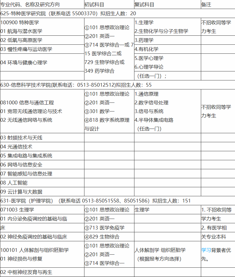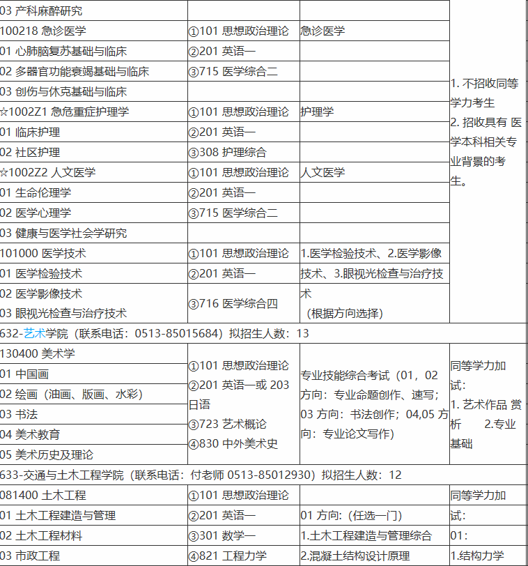 請有意向的同學(xué)請一定注意查看簡章內(nèi)容啦!以上是醫(yī)學(xué)教育網(wǎng)小編整理的“南通大學(xué)2021年全日制學(xué)術(shù)學(xué)位碩士研究生招生專業(yè)目錄”全部內(nèi)容,想了解更多醫(yī)學(xué)考研知識及內(nèi)容,請點(diǎn)擊醫(yī)學(xué)教育網(wǎng)。希望各位同學(xué)能選到自己心儀的院校并順利通過初試!