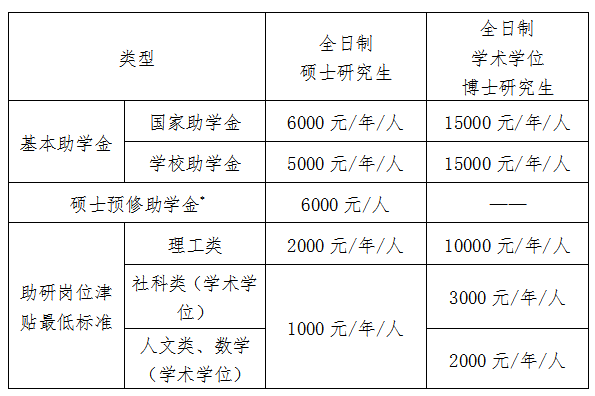 助學金用于資助納入全國研究生招生計劃、具有中華人民共和國國籍的全日制研究生(有固定工資收入的除外)。資助標準如下: