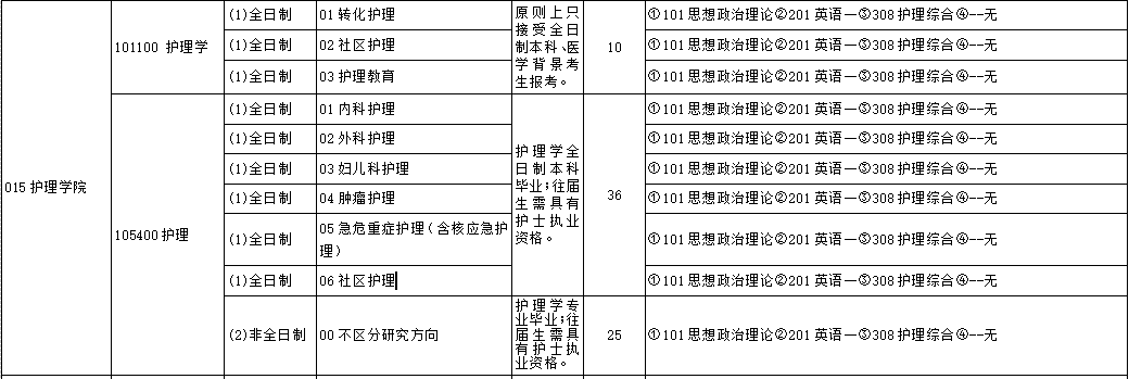 | (1)全日制 | 06急診科學 | ①101思想政治理論②201英語一③731醫(yī)學綜合(自命題)④--無 | ||||