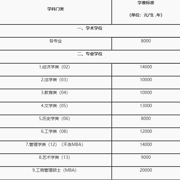 (一)全日制碩士研究生學(xué)費(fèi)標(biāo)準(zhǔn)