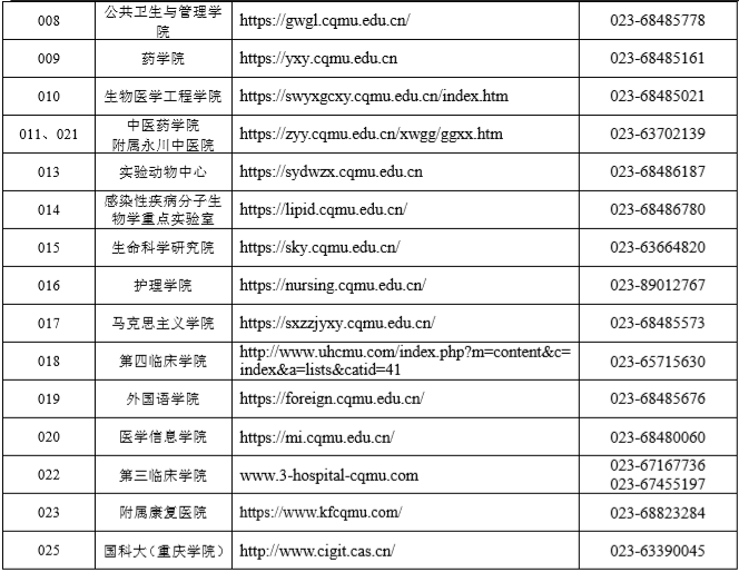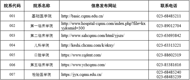2.地點(diǎn):重慶醫(yī)科大學(xué)各研究生招生院系。