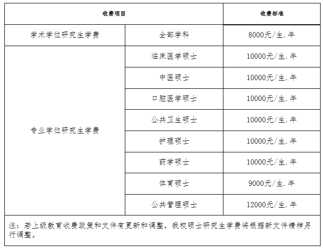 2.根據(jù)《關(guān)于繼續(xù)執(zhí)行我省研究生教育收費(fèi)政策及有關(guān)問題的通知》(川發(fā)改價(jià)格[2019]357號(hào))文件規(guī)定,我校碩士研究生學(xué)費(fèi)執(zhí)行如下: