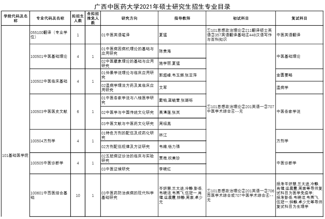 點擊查看:2021年廣西中醫(yī)藥大學碩士研究生招生章程及專業(yè)目錄