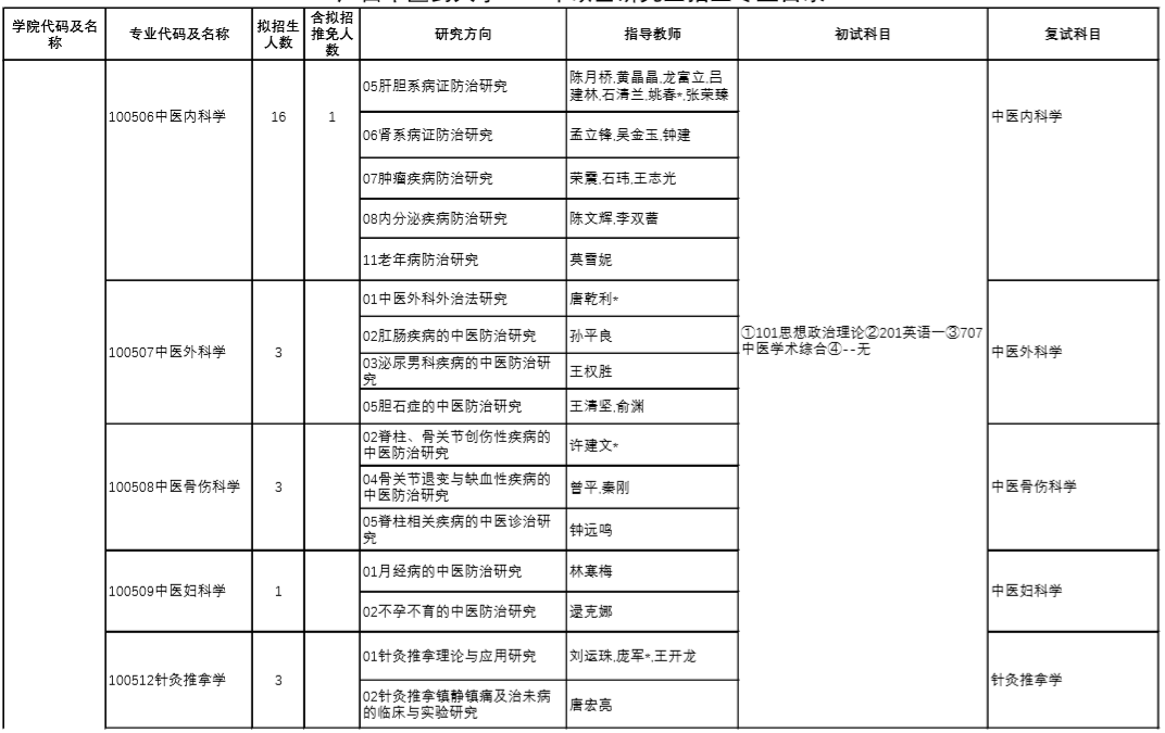 | 12 | 100512/105707 | 針灸推拿學 | 中醫(yī)診斷學、方劑學 |