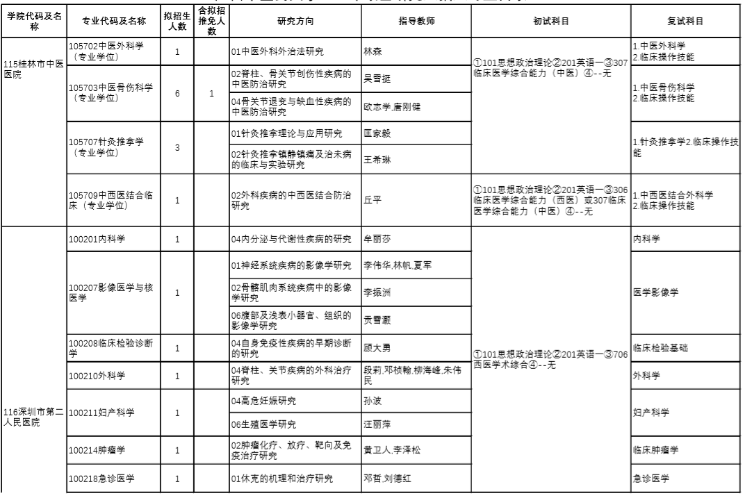 廣西中醫(yī)藥大學碩士研究生招生專業(yè)加試科目表