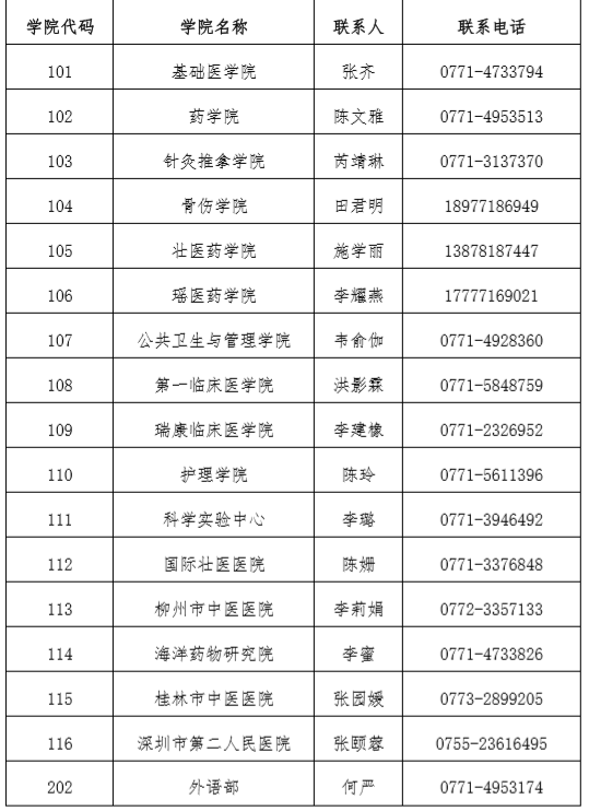 通訊地址:廣西南寧市五合大道 13 號廣西中醫(yī)藥大學(xué)仙葫 校區(qū)自誠樓 4 樓 A405 研究生院招生科