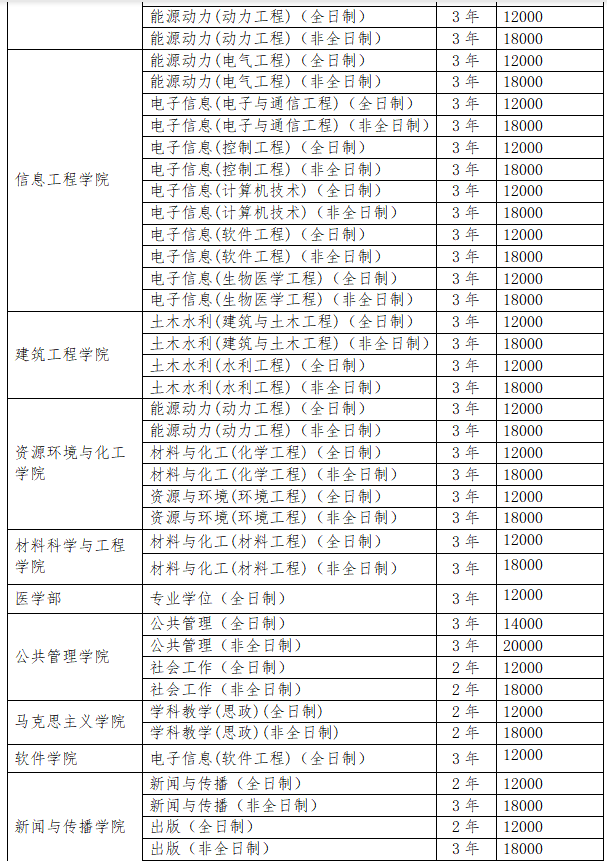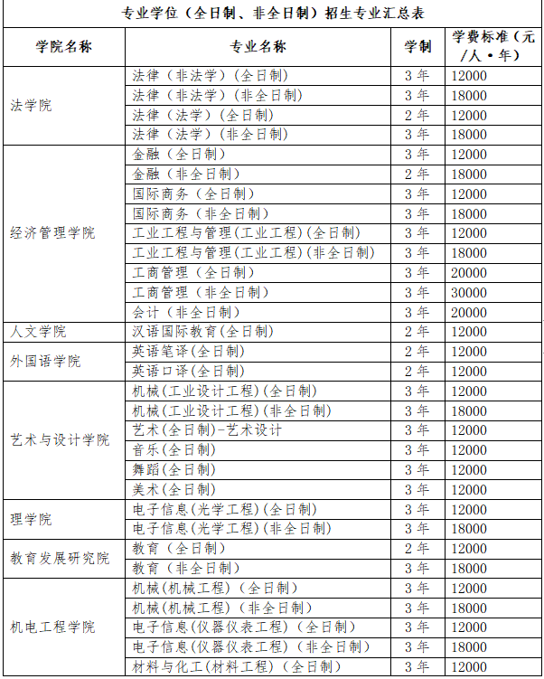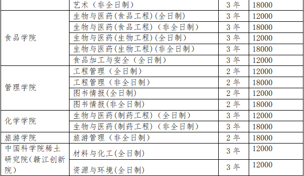 根據(jù)國(guó)家有關(guān)規(guī)定,我校全日制學(xué)術(shù)學(xué)位碩士研究生的學(xué)費(fèi)標(biāo)準(zhǔn)為:8000元/人·年;全日制、非全日制專業(yè)學(xué)位碩士研究生的學(xué)費(fèi)標(biāo)準(zhǔn)詳見下表,最終學(xué)費(fèi)以江西省物價(jià)部門核準(zhǔn)的學(xué)費(fèi)標(biāo)準(zhǔn)為準(zhǔn):
