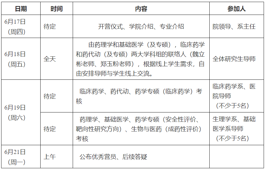 學(xué)院對申請人資格進(jìn)行審核,確定入選名單,并于6月14日前通知申請人,未收到通知者即未入選,不再另行通知。入選營員須于6月16日前在系統(tǒng)中回復(fù)確認(rèn)是否參營,逾期未回復(fù)者視為自動放棄。