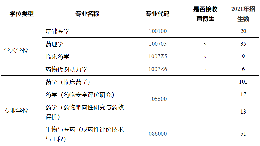 (2)全國高校2022屆應(yīng)屆本科畢業(yè)生,所學(xué)專業(yè)為臨床藥學(xué)類、藥學(xué)類、中藥學(xué)類、生物科學(xué)類、生物醫(yī)學(xué)工程類、基礎(chǔ)醫(yī)學(xué)類等相關(guān)專業(yè),優(yōu)先接收來自“雙”建設(shè)高校的學(xué)生。