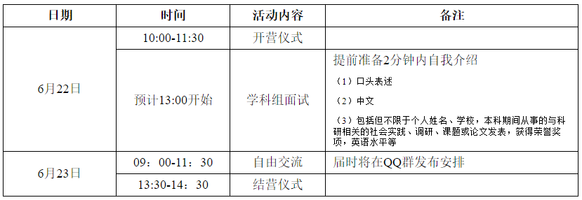 學(xué)院對(duì)申請(qǐng)人資格進(jìn)行審核,確定入選名單,并于6月15日前通知申請(qǐng)人,未收到通知者即未入選,不再另行通知。入選營(yíng)員須在6月16日20:00前在夏令營(yíng)報(bào)名系統(tǒng)中回復(fù)確認(rèn)是否參營(yíng),逾期未回復(fù)者視為自動(dòng)放棄。