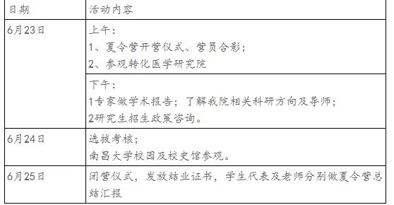 為了選拔優(yōu)秀大學生免試攻讀南昌大學轉(zhuǎn)化醫(yī)學研究院碩士研究生,本院將于2021年暑期6月23日-25日舉辦2021年優(yōu)秀大學生暑期夏令營。